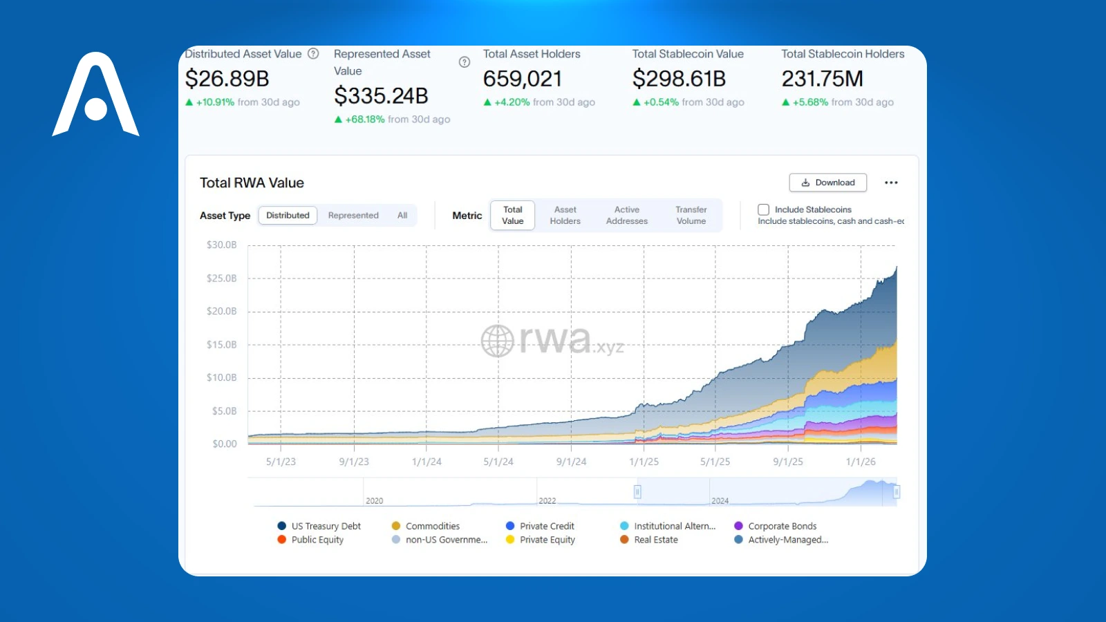 • rising total value of assets represented onchain